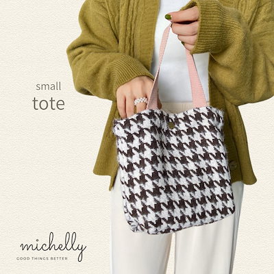 トートバッグ ミニ 小さめ 千鳥格子 モヘア 軽量 軽い レディース 収納 サブ お弁当 ランチ 布 おしゃれ かわいい 秋冬 シンプル デイリー 普段使い ブラウン ピンク コンパクト