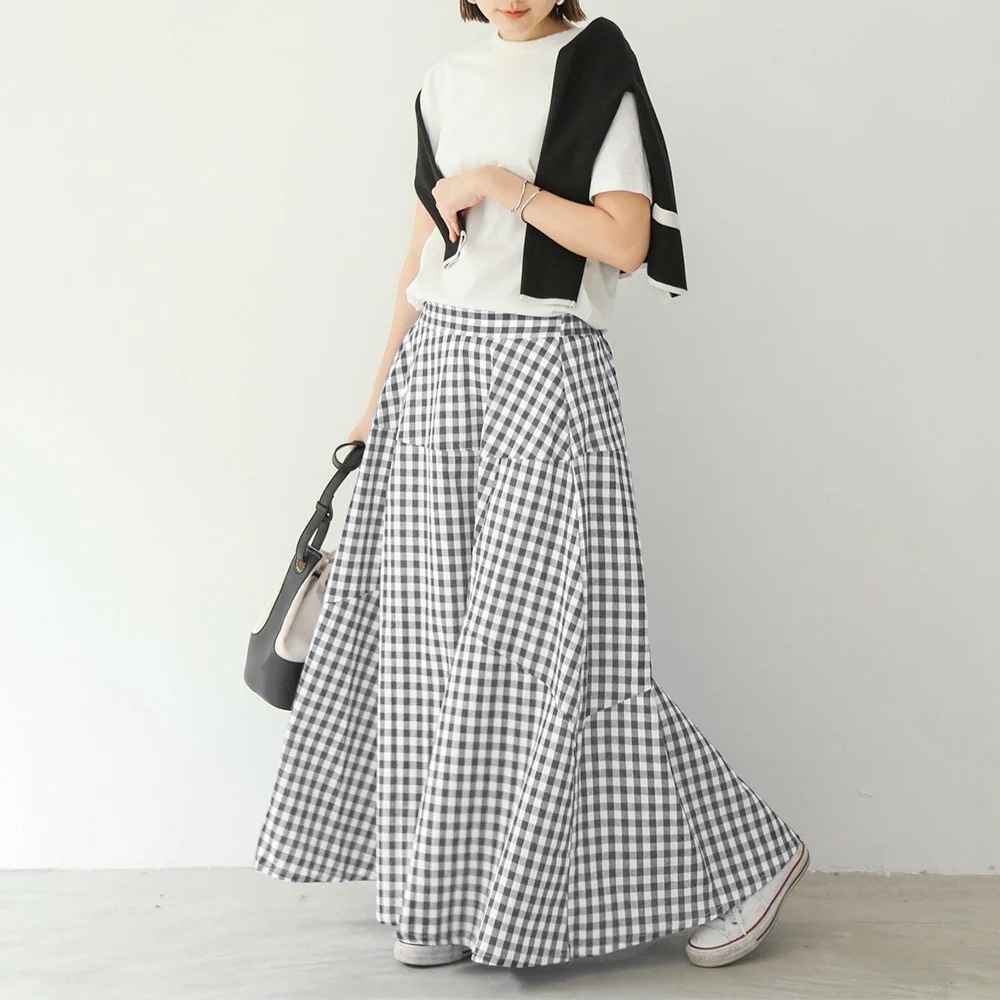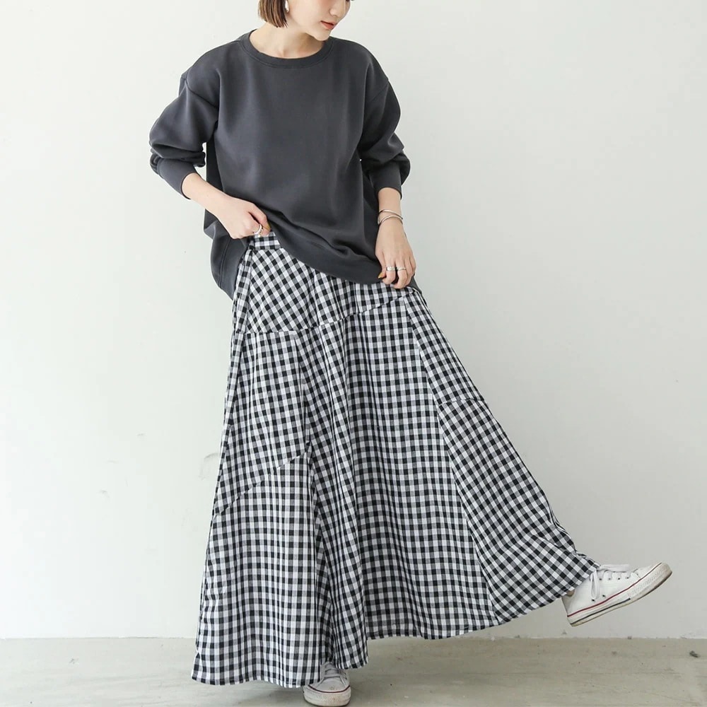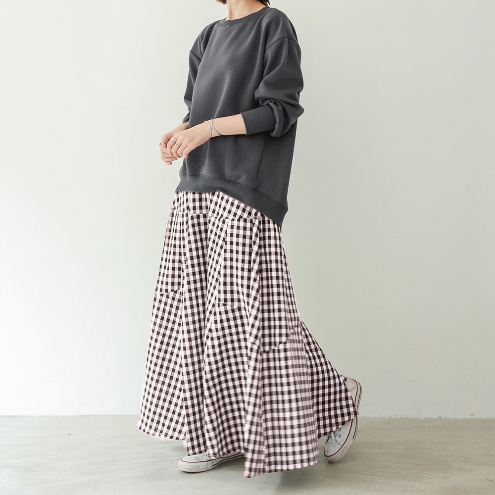 生地は柔らかい感じではなく張りのある生地なのでボリュームがあります。ストンと落ちる感じではありません。