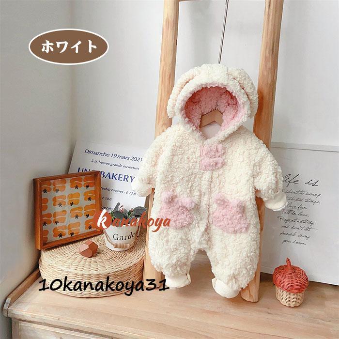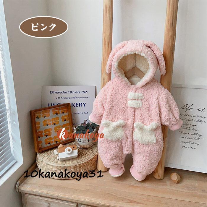ロンパース ベビー ボアロンパース 兎耳フード ジャンプスーツ カバーオール 赤ちゃん ベビー 秋冬 裏起毛 長袖 防寒 新生児 可愛い ウサギ 着ぐるみ 出産祝い