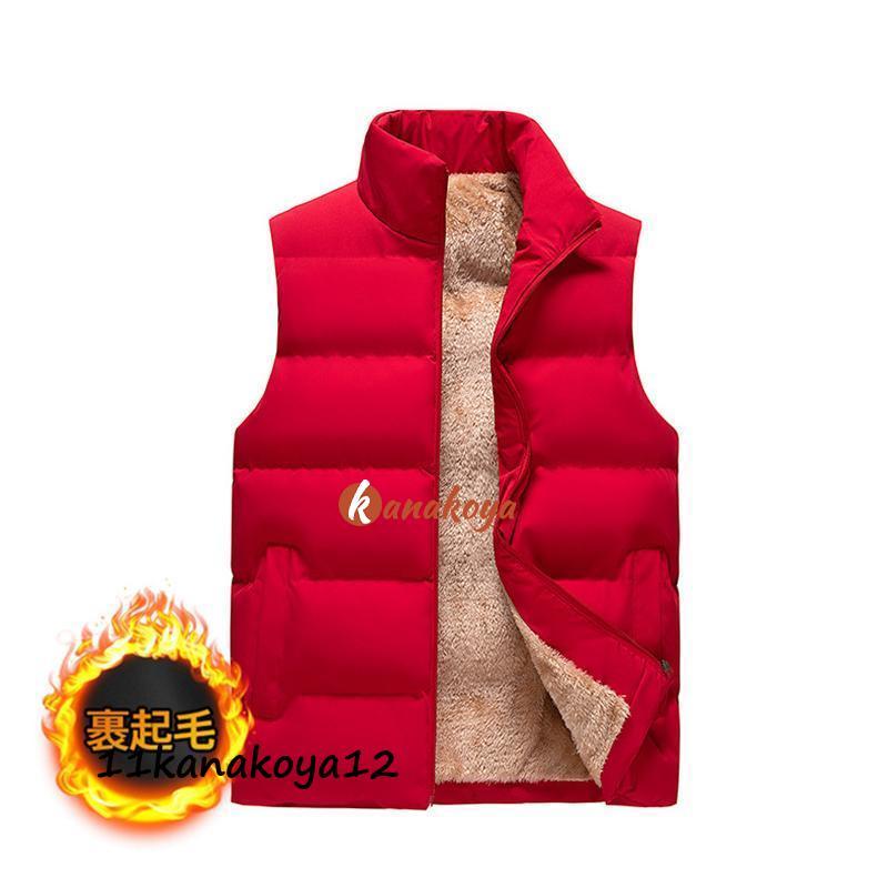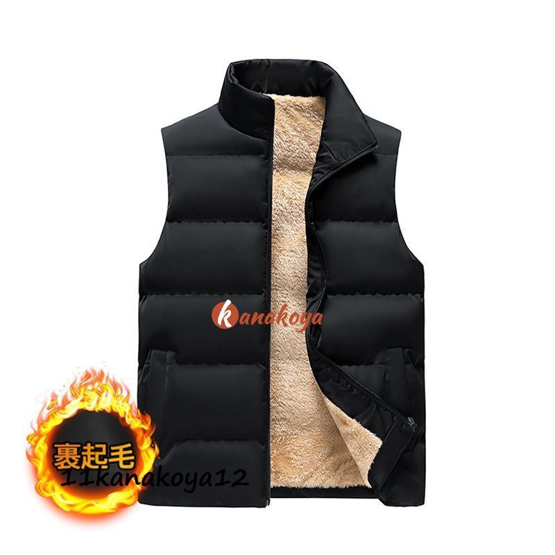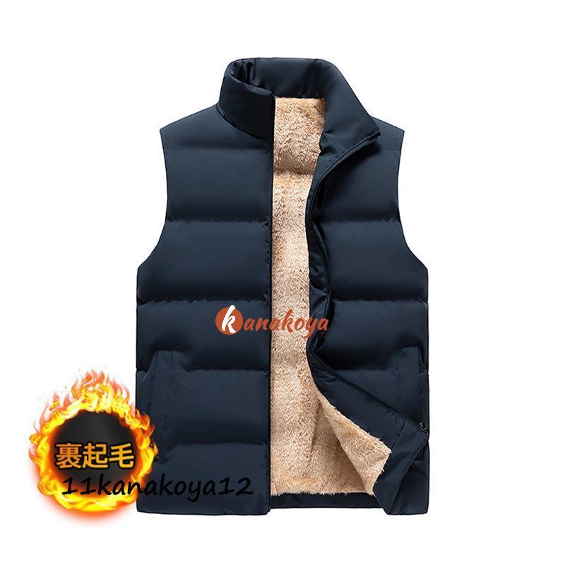 中綿ベスト メンズ ダウンベスト 立ち襟 裏起毛 裏ボア ボアベスト ビジネス ノースリーブ 前開き 無地 大きいサイズ 防寒 暖かい 通勤 秋冬