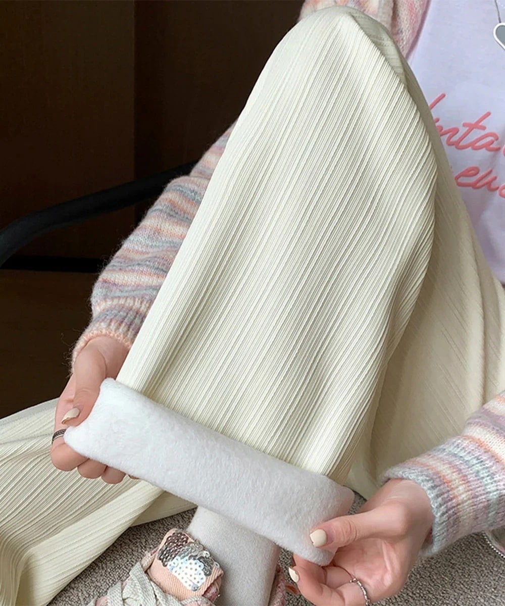 人气 新作 裏起毛ストレートパンツ暖かい レディース