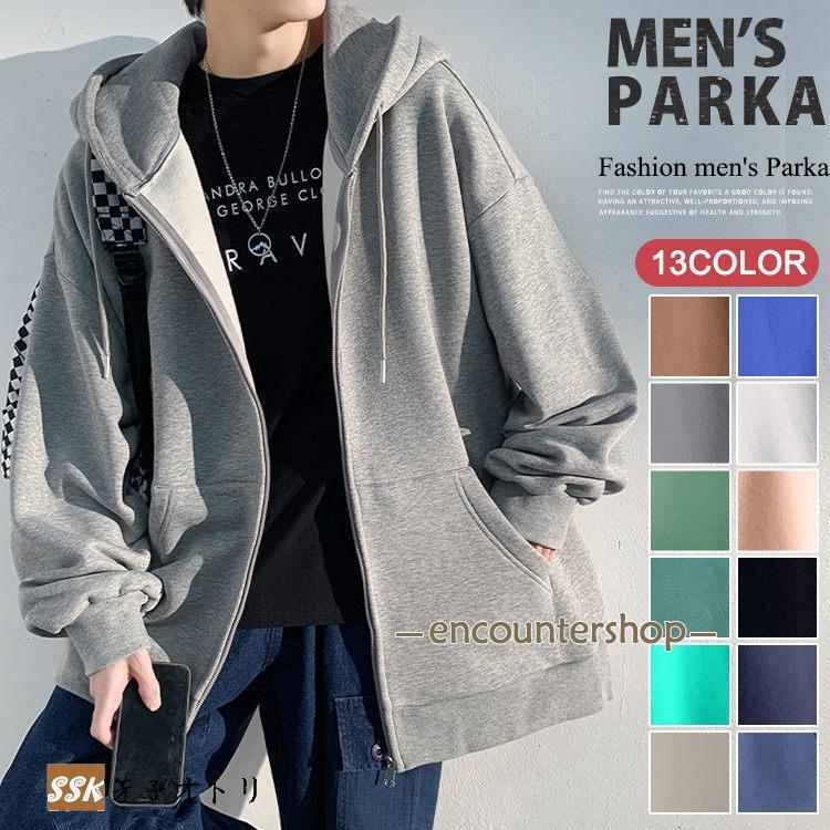 ジップ メンズ ゆったり 長袖 無地 パーカ 羽織 スウェット オシャレ 春 秋 ファッション
