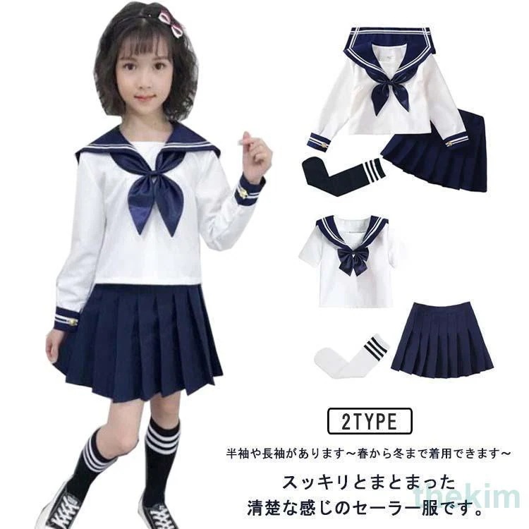 キッズ 半袖 長袖 学生服 衣装 セーラー服 スーツ 子供 女の子 こどもスーツ 女子高生 制服 上下セット セーラーセット 4点