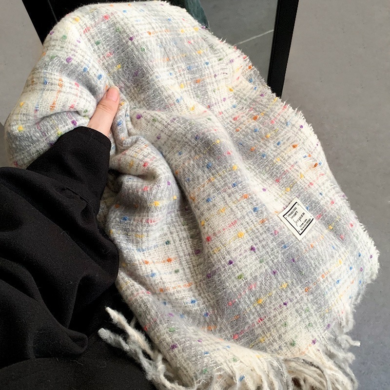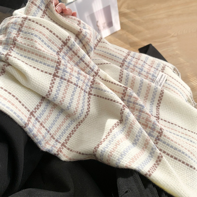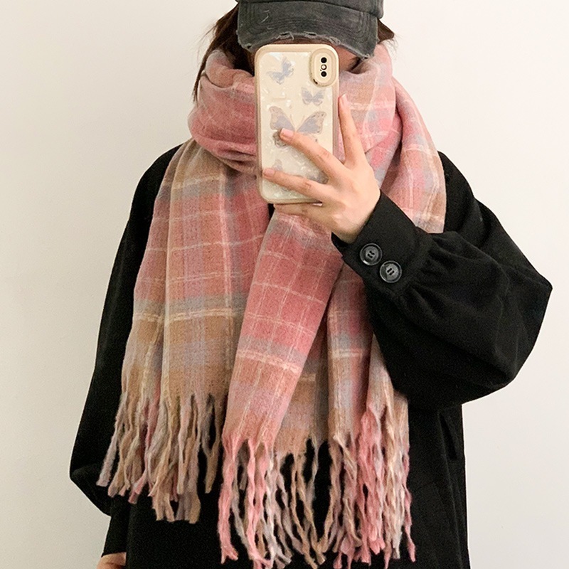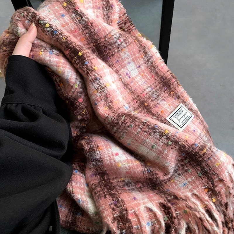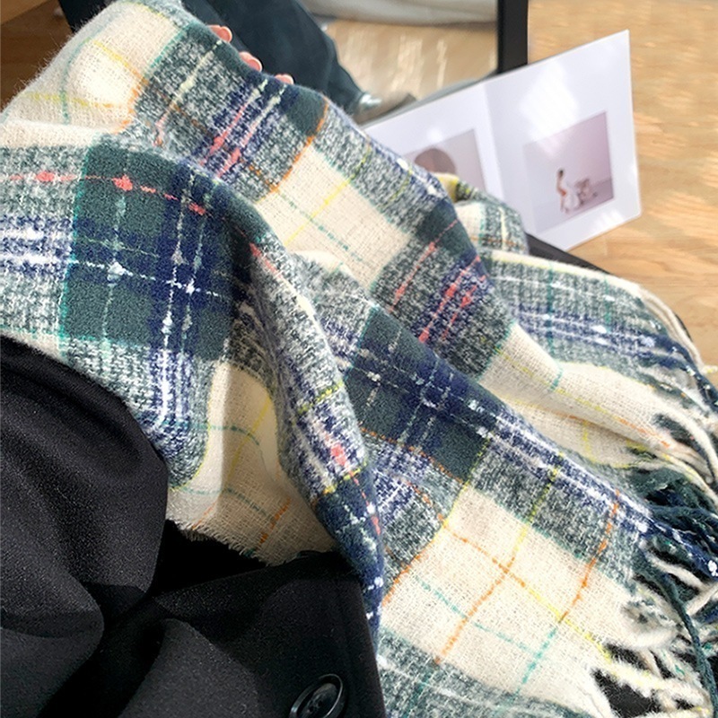 ヴィンテージ柄マフラー冬2024新作チェック柄マフラータッセルとろみマフラー