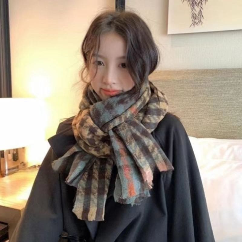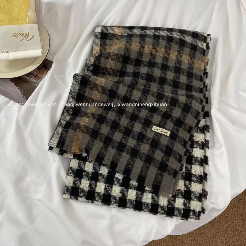 スポット2024新作大判チェック柄マフラー秋冬ロング厚手マフラー 秋冬新作 韓国製 厚手