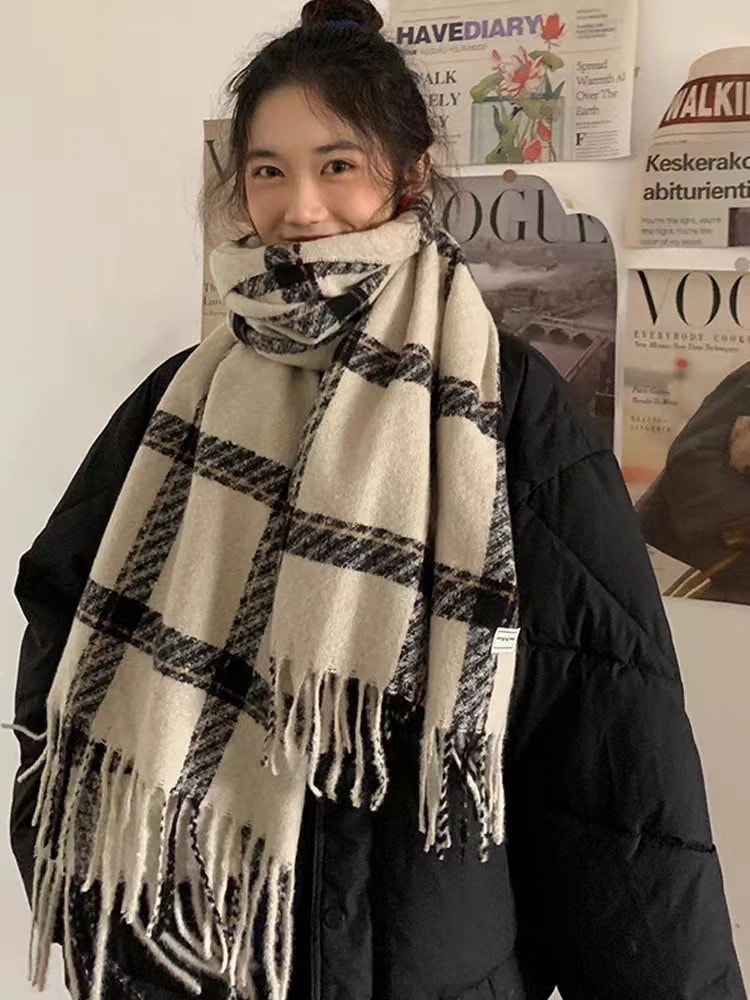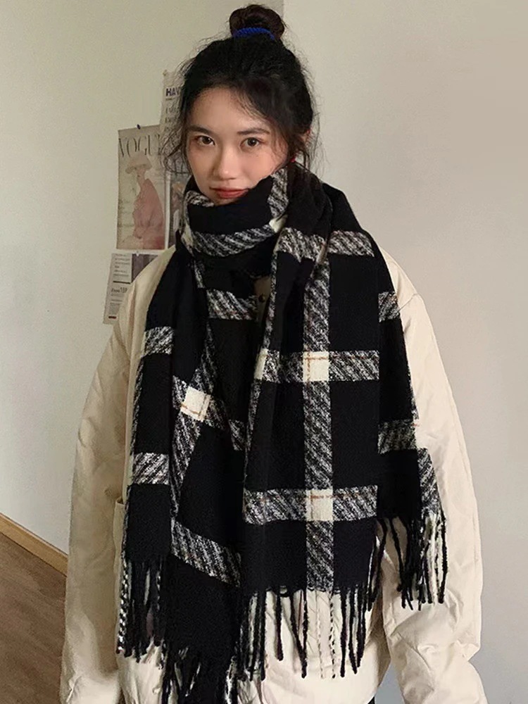 2024新作チェック柄タッセルマフラー冬韓国厚手あったかマフラー 秋冬新作 韓国製 厚手