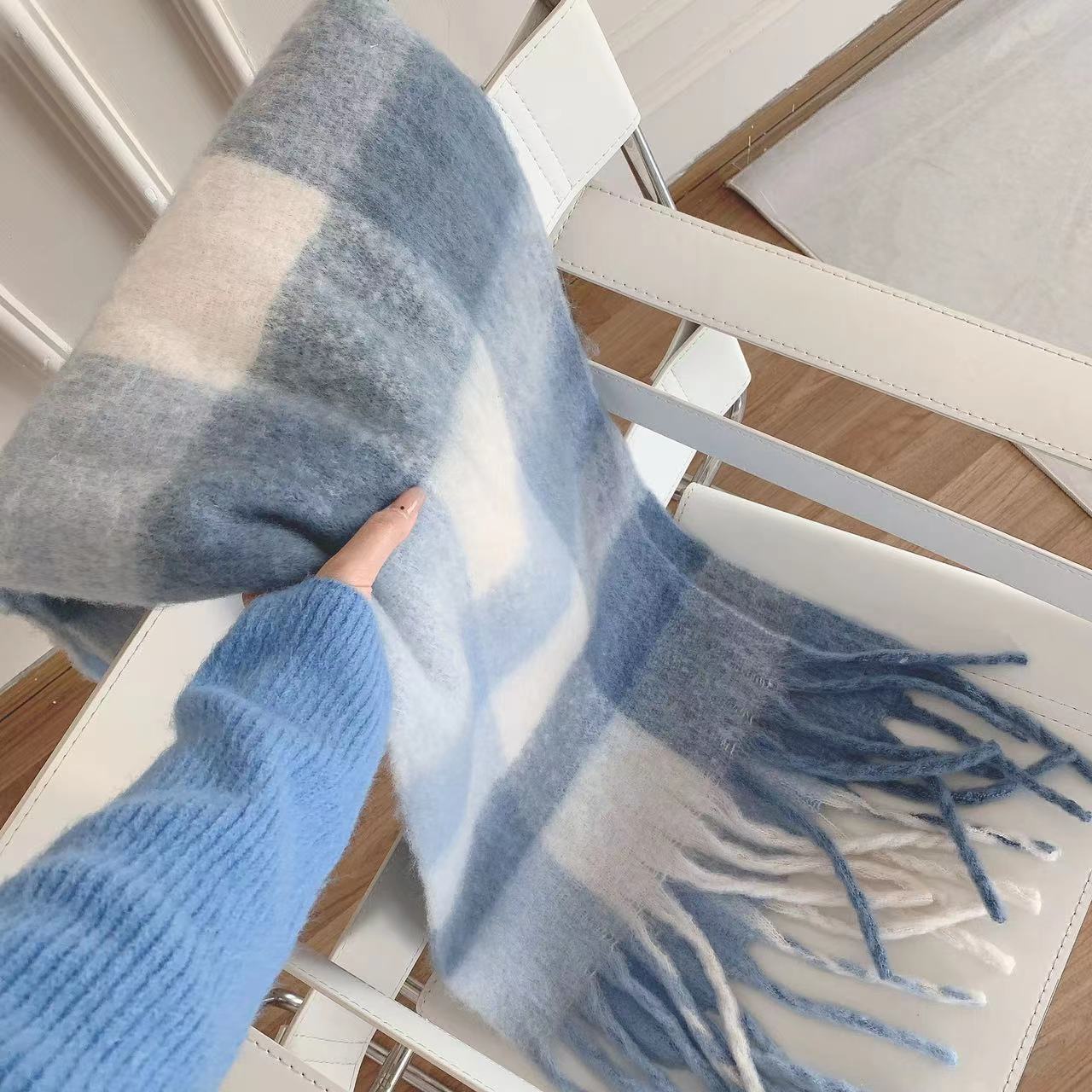 思ったよりふわふわした感触で、着けていてとても暖かいです。長さもあるので、いろいろアレンジできるのがいいです。