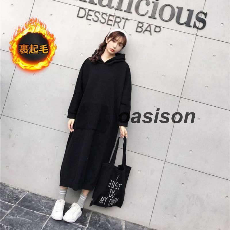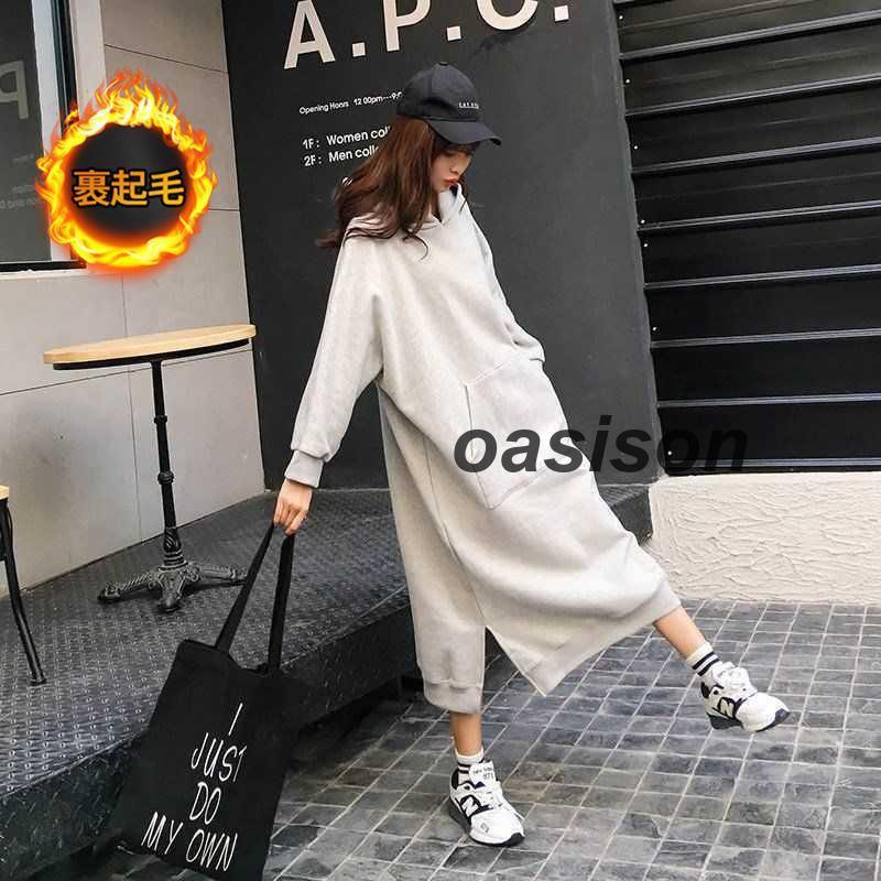 人気沸騰 新品 裏起毛 ワンピース パーカーワンピース レディース 秋冬 長袖 暖かい 極暖 あったか ビッグシルエット ゆったり ロング丈 サイドスリット 綿混