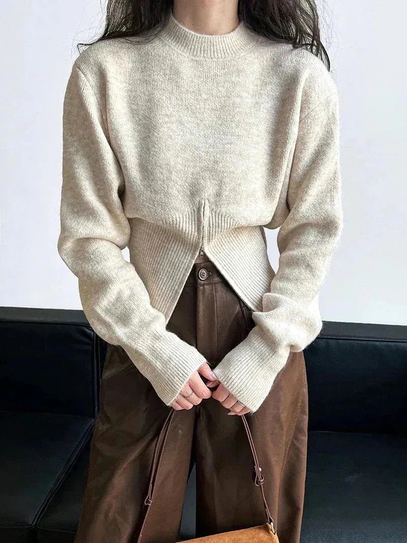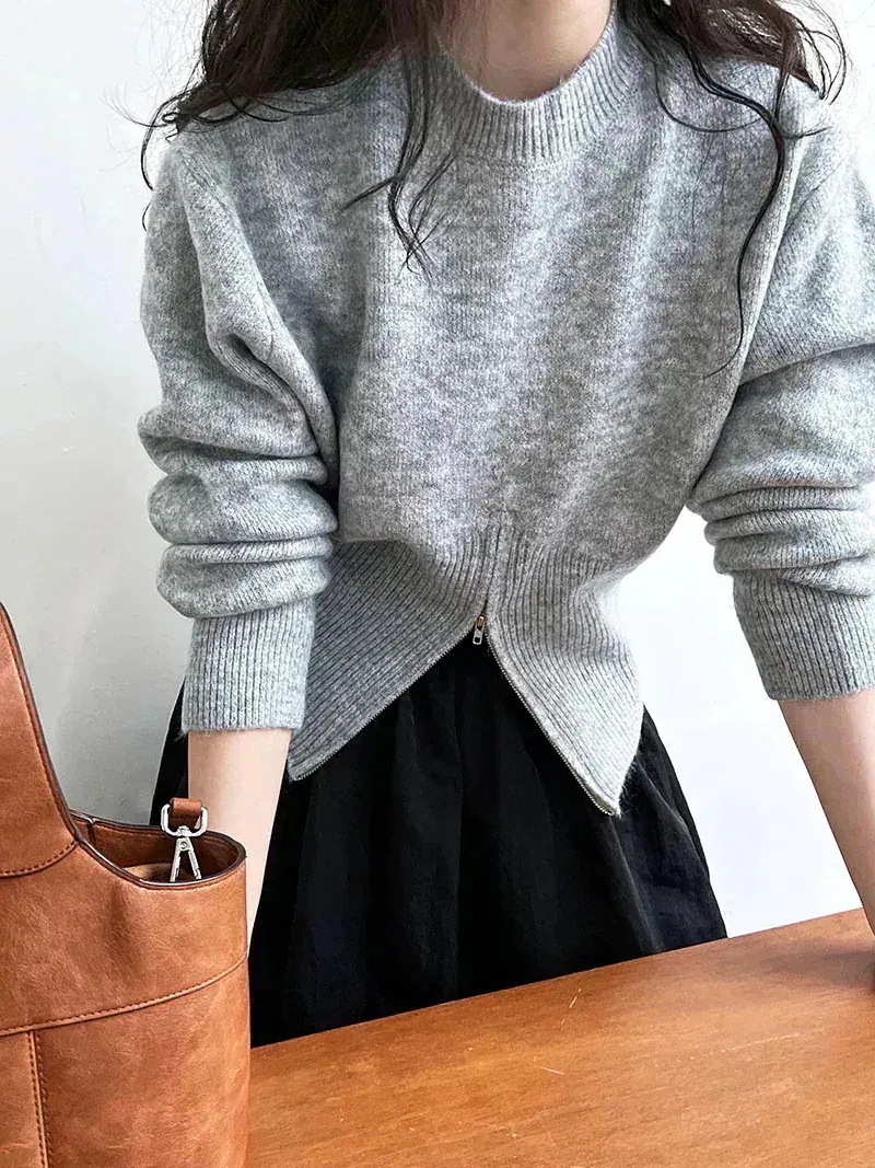 おすすめ トレンド トップス ニット セーター Uネック レディース おしゃれ フリーサイズ ジッパーで装飾する