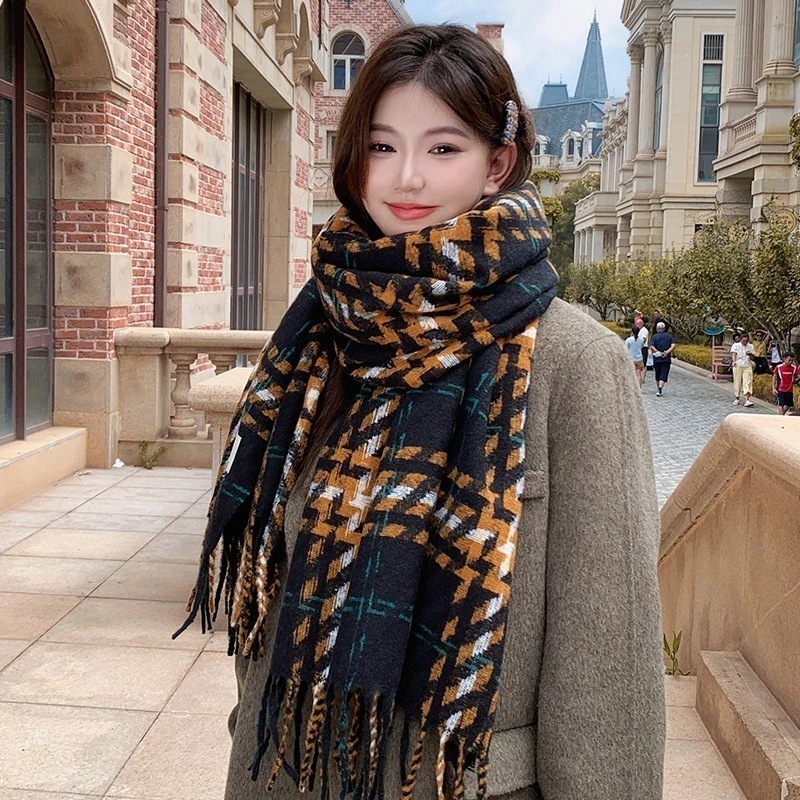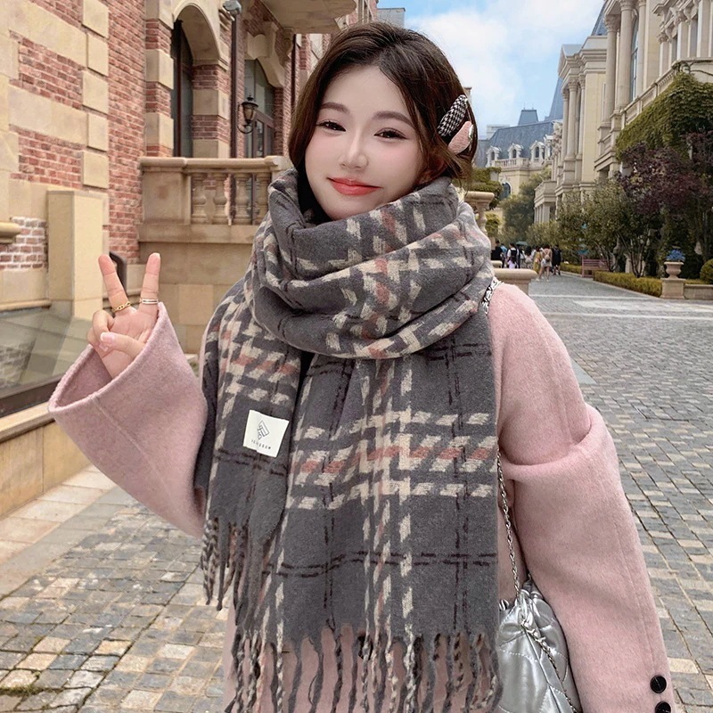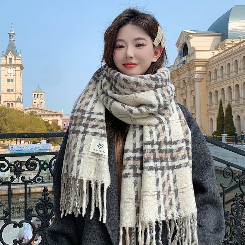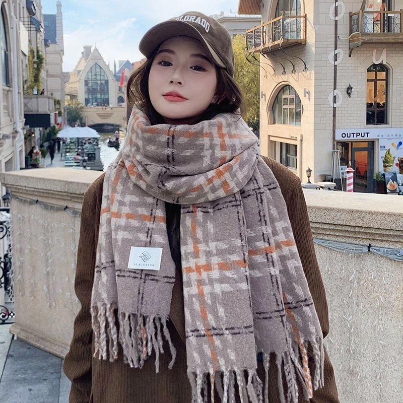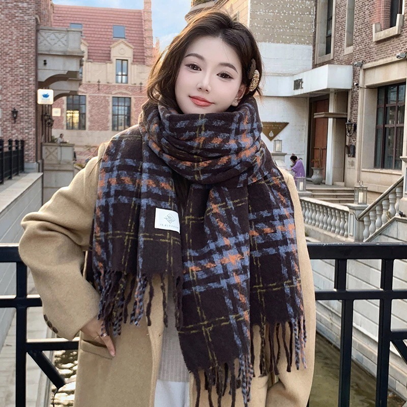 マフラー2024新色ブロッキング格子縞マフラー女性秋冬モデル暖かさ増厚学生マフラー 韓国マフラー