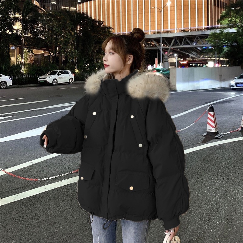 韓国ファッション 人気アウター 香港風綿入れ女性ショート丈冬の韓国版ゆったり厚手学生綿入れ大毛襟パン服コートブーム