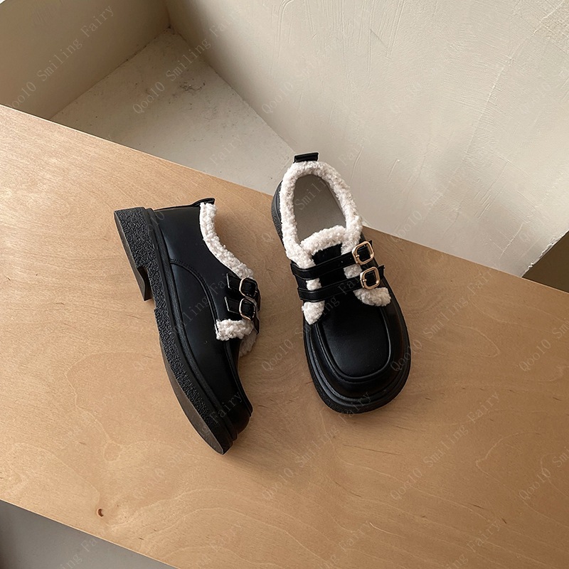 【秋冬の新作発売】【最安値挑戦】英倫風単靴女2024年秋冬新小柄綿靴一文字ボタンにスエードの厚底小靴-95