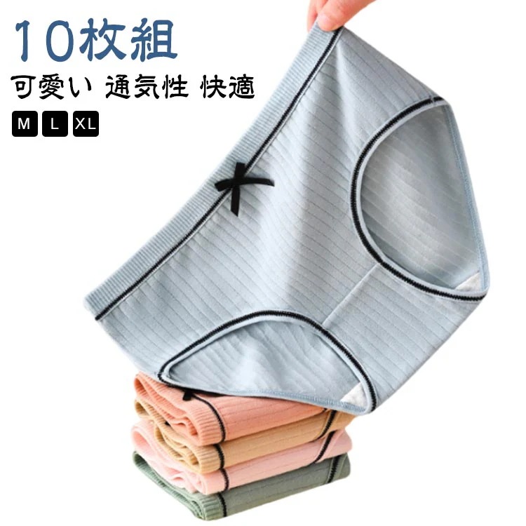 10枚組 ショーツ レディース M L XL 下着 インナー 女性 パンツ パンティ 可愛い スタンダード 美尻 すっぽり 肌に優しい リボン リブ ジュニア 女子 くすみカラー かわいい シンプル