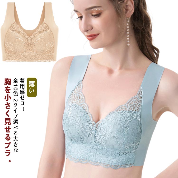 全10色 2タイプ選べる 送料無料 小さく見せるブラ ブラジャー ブラ 小さく 見せる 小さく見せるブラジャー 大きな胸を小さく見せるブラ 薄い 大きいサイズ 胸を小さく見せるブラジャー ノンワイヤー