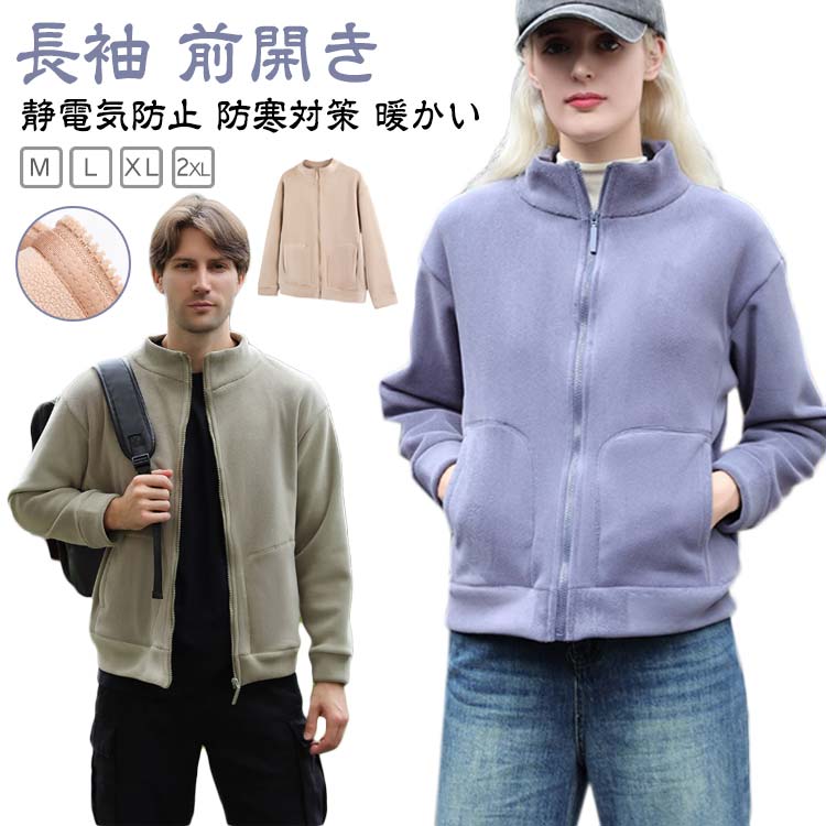 フリースジャケット メンズ レディース ジップアップ 長袖 前開き 立ち襟 ボアフリース 保温 静電気防止 防寒対策 軽量 厚手 もこもこ トップス パーカー 暖かい 無地 シンプル ルームウェア 通