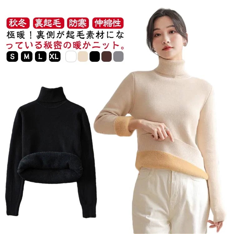 ニット セーター レディース 秋冬 裏起毛 ハイネック 裏ボア ニットセーター プルオーバー 無地 タイト インナー 長袖 防寒 タートルネック シンプル 柔らかい 裏起毛有り 裏起毛なし オフィス