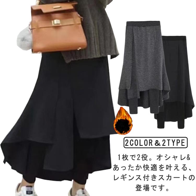 スカートレギンス スカート付きレギンス レディース 2タイプ フレア タイト レギンス 起毛 スカート 膝下 レギンス レギパン レギンスパンツ ペンシルスカート フェイクレイヤード 重ね着風 秋冬