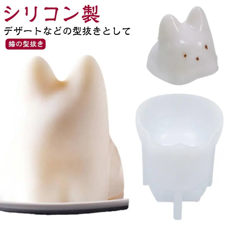 送料無料 ねこプリン 型抜き ゼリー型 シリコン製 猫 ネコ プリン ねこ カップ カフェ かわいい おしゃれ ネコカップ 猫プリン デザート 押し型 猫型 子供 ゼリー お菓子作り 料理 パーティー