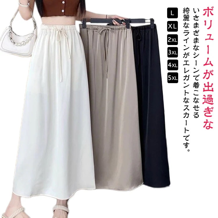 スカート エレガント ロングスカート レディース サテン 落ち感 フレア 光沢感 マキシ丈 マーメイド タイト 上品 大人 韓国風 フェミニン 通勤 涼感 冷感 涼感 体型カバー きれいめ 光沢感 上