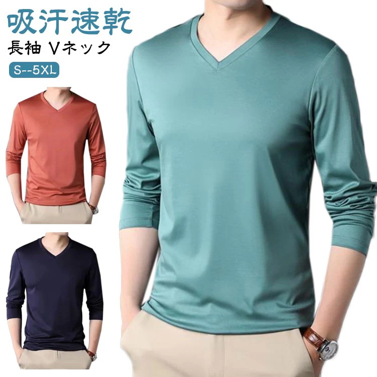 Tシャツ メンズ 無地 ストレッチ 長袖 Vネック ロンT 無地 カットソー ロングTシャツ メンズファッション トップス 服 tシャツ ショート丈 シャツ 40代 ファッション 秋冬 長袖 ストレッ