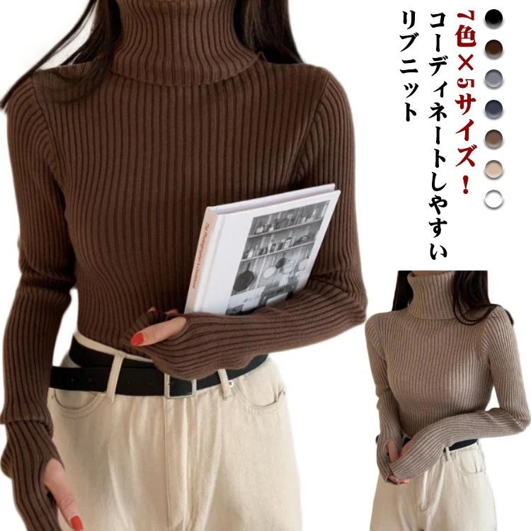 リブニット トップス タートルネック ハイネック セーター レディース タイト 着瘦せ 洗えるニット 重ね着 秋冬 暖かい ウォッシャブルニット インナーシャツ 大きいサイズ 大人可愛い おしゃれ カ
