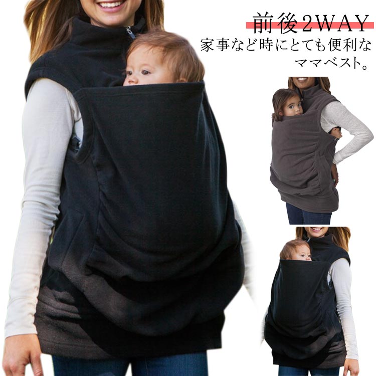ママコート おんぶ 抱っこ 2way パーカー ママベスト アウター あったか フリース ジャケット 送料無料 抱っこ紐ケープ 抱っこ だっこ おんぶ アウター ベスト カンガルーポケット ベビーが入
