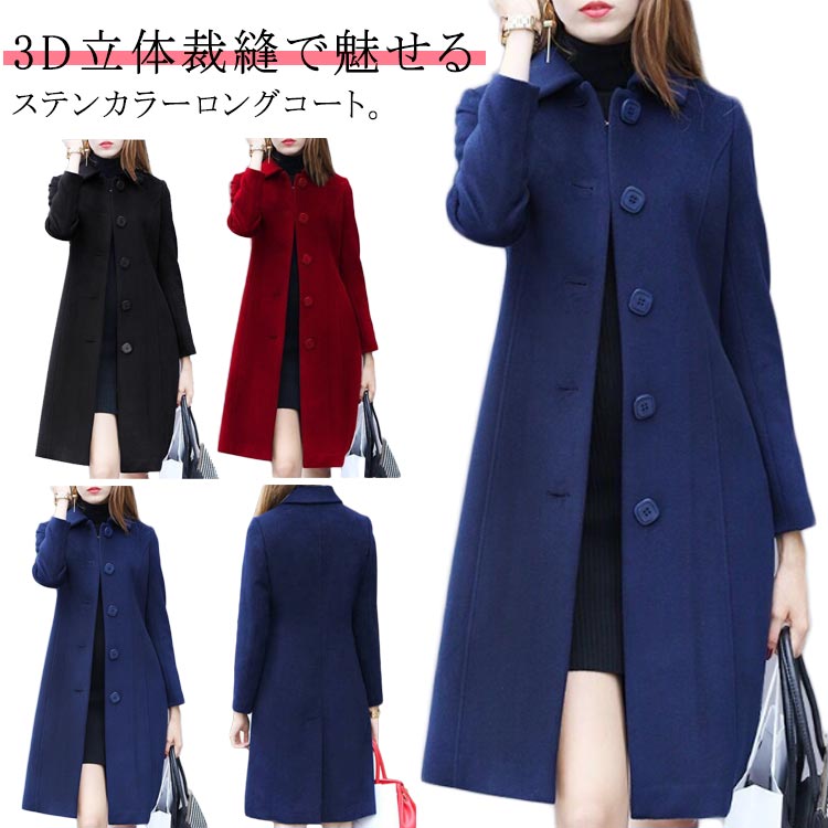 ステンカラーロングコート アウター 冬服 レディース 裏 中綿入り キルティング チェスターコート 無地 ひざ丈 ロングコート 秋冬物 細身 着痩せ 立体裁縫 メルトンコート フェイクウール コート