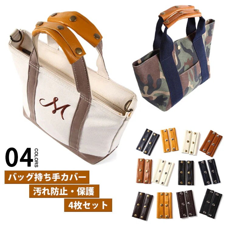 バッグ 持ち手 カバー 4枚セット PU レザー おしゃれ ハンドルカバー 汚れ防止 肩当て 傷 保護 トートバッグ エコバッグ かごバッグ ビジネスバッグ PU革 取っ手 持ちやすい レディース メ