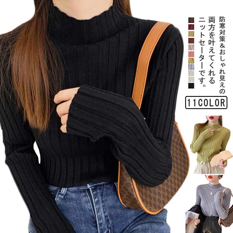 ニットセーター レディース ハイネック 可愛い リブニット スリム 保温 暖かい フェミニン お洒落 トップス プルオーバー 通勤 通学 柔らかい ストレッチ 着痩せ 送料無料