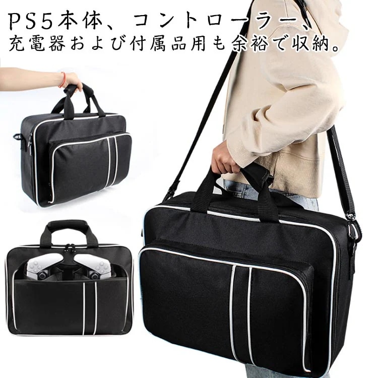 PS5対応バッグ 収納バック 2way 大容量 手提げ 肩掛け ダブルファスナー 保護ケース キャリーバッグ 持ち運び 耐久 軽量 耐衝撃