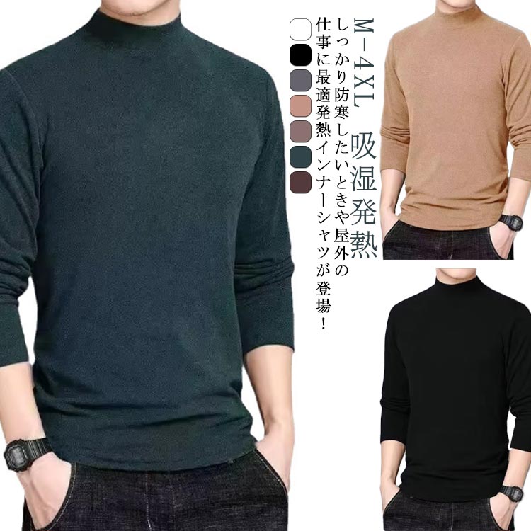 あったかインナー メンズ 長袖 インナー インナーシャツ 防寒着 防寒 肌着 両面起毛 ヒートテック ロンT Tシャツ カットソー タートルネック ハイネック 秋冬 裏起毛 保温 吸湿発熱 インナー