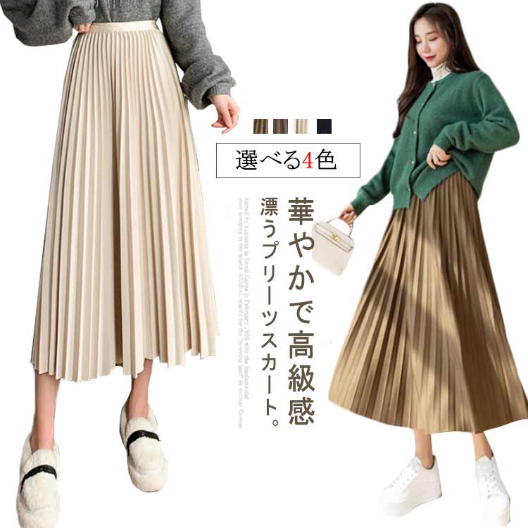 スカート プリーツスカート ロング プリーツ レディース フレア ロングスカート マキシスカート フレアスカート ウエストゴム 大きいサイズ Aライン ボトムス オフィス カジュアル きれいめ 大人可