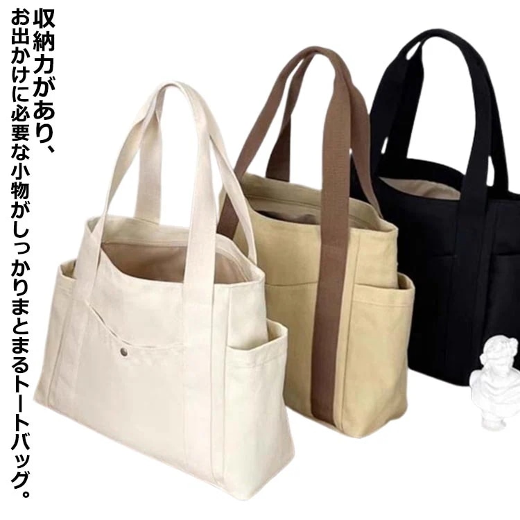 送料無料 トートバッグ キャンバス 肩掛け 無地 マザーズバッグ トート バッグ キャンバストートバッグ キャンバスバッグ 仕切り付き 持ち手 長め レディース メンズ 大きめ 布 A4 横 整理整頓