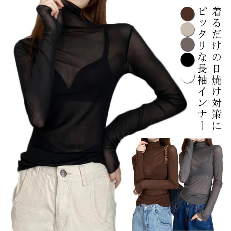 シアートップス 長袖 薄手 シアー トップス ハイネック レディース UV対策 紫外線対策 接触冷感 クール冷感 シースルー トップス レイヤード インナー セクシー 肌見せ きれいめ ミセス 20代