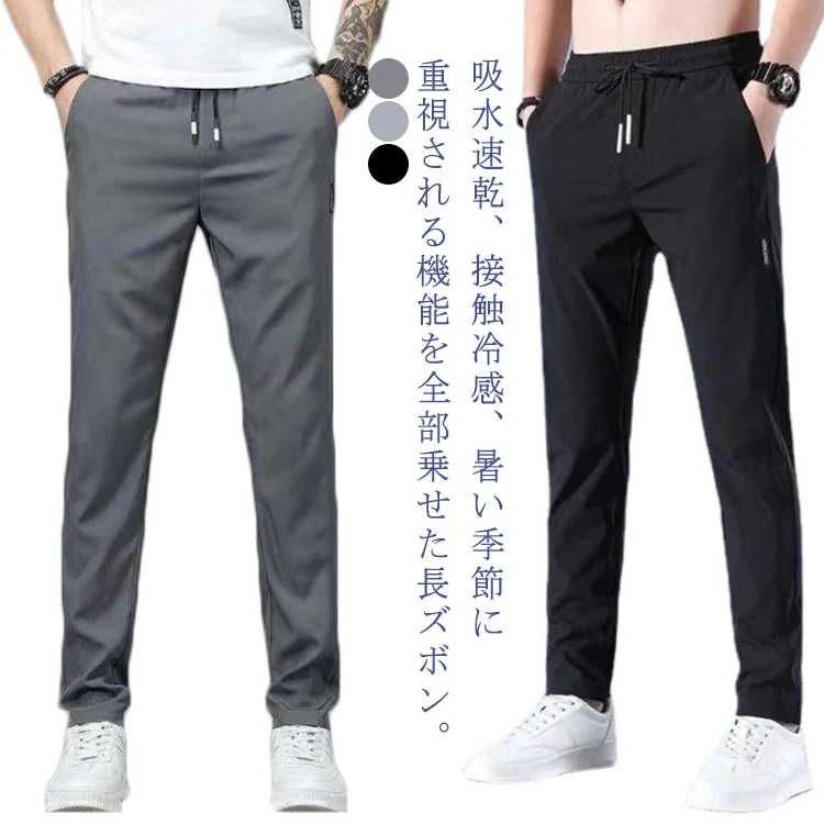 スキニーパンツ メンズ 夏 ゴルフパンツ 接触冷感 チノパン 薄手 蒸れない 通気 速乾 黒 ブラック グレー ひんやり 涼しい ロングパンツ トレーニングパンツ 伸縮 ストレッチ 美脚 長ズボン ス
