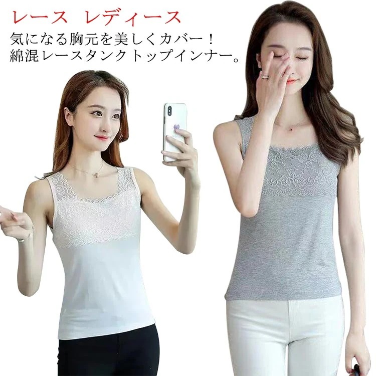 キャミソールレース スクエアネック インナー ブラ紐隠し レディース タンクトップ レディース ロング丈 大きいサイズ 小さいサイズ レディース 夏 涼しい キャミソール 黒 白 送料無料