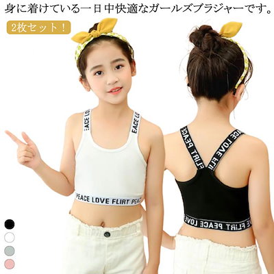 2枚セット 送料無料 ジュニアブラ キッズ 女の子 ハーフトップ スポーツブラ ファーストブラ Y字 子供用 小学生 中学生 インナー 下着 女子 英字 ガールズ 綿 ブラジャー ノンワイヤー コット