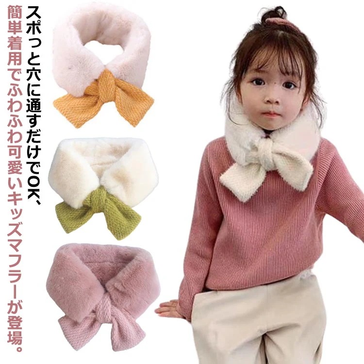 送料無料 キッズ マフラー リボン エコファー ティペット 子供 子供用マフラー スカーフ スヌード 防寒 冬 あったか ネックウォーマー 女の子 かわいい 通してクロスするだけ 簡単 ワンサイズ