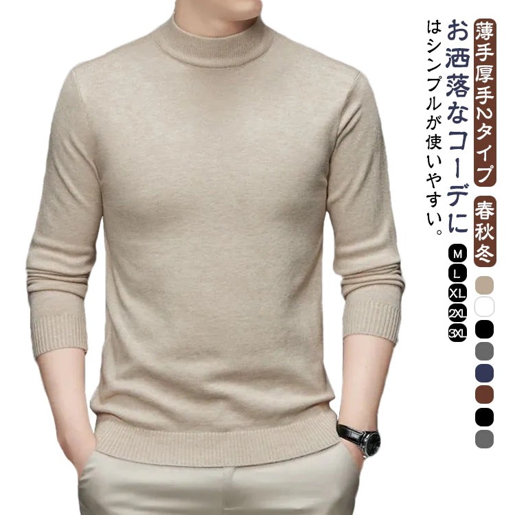 ニットセーター メンズ 長袖ニット ニット 薄手厚手2タイプ トップス ハーフタートルネック 裏起毛 セーター 春秋冬 大きいサイズ 防寒 暖かい 無地 ビッグシルエット カジュアル ゴルフ おしゃれ
