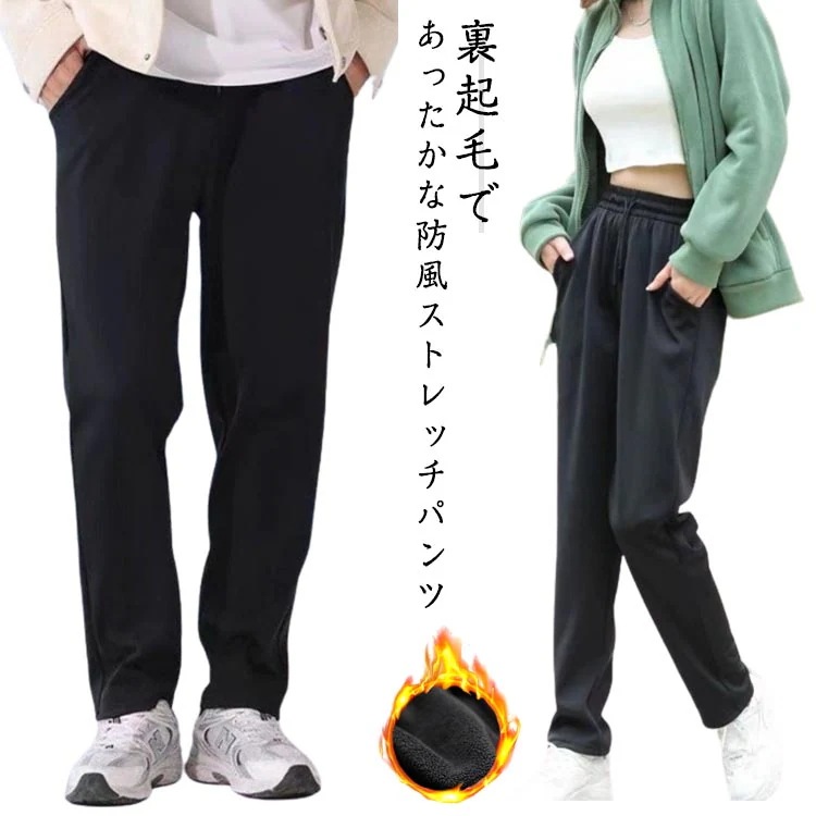 パンツ 裏起毛 防風 撥水 防寒 暖かい ストレッチ ウェストゴム イージーパンツ 男女兼用 ユニセックス ストレート ジョガーパンツ メンズ レディース ポケット付き 防寒 ゴルフ 登山 アウトドア