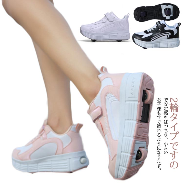 ローラースケート ローラーシューズ 2輪式 前輪取外し可能後輪ワンボタン収納式 スポーツシューズ 男女兼用 女の子 男の子 両輪 子供用運動靴 ギフト 収納式インラインスケート キッズスニーカー ギフ