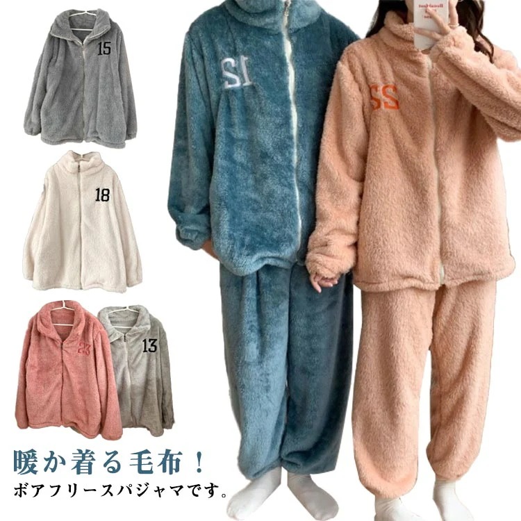 ペアパジャマ 厚手 もこもこ カップル ペア ルームウェア 部屋着 上下 セット 暖かい フリース パジャマ 蒸れにくい ペア 着る毛布 柔らかい ふわふわ 裏起毛 レディース メンズ 夫婦 お揃い