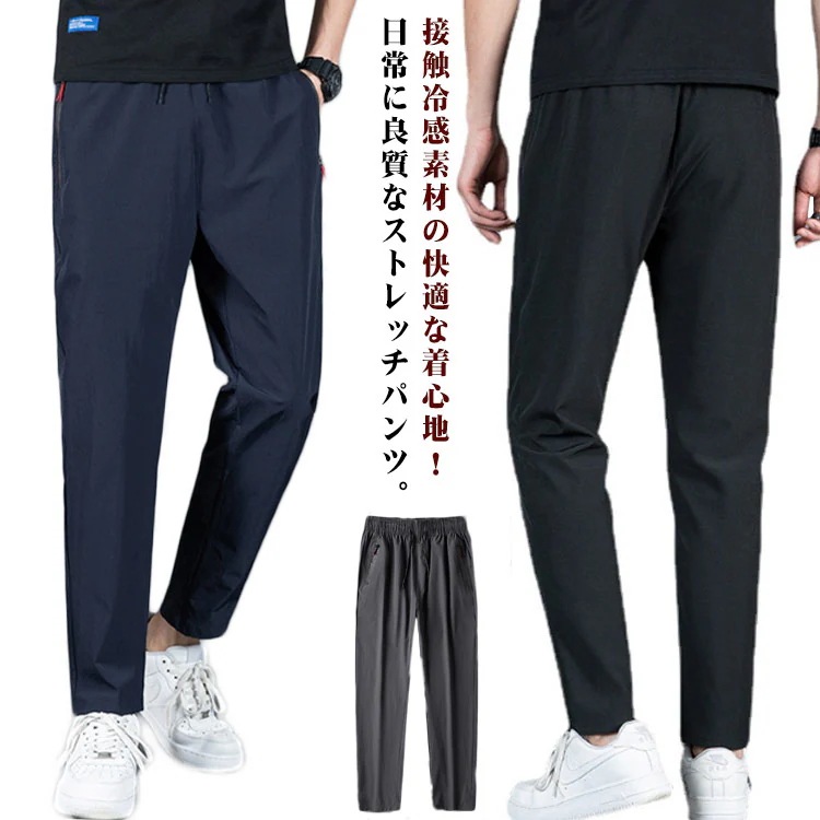 スポーツパンツ メンズ ジョガーパンツ 接触冷感 イージーパンツ ひんやり 速乾タイプ チノパンツ スポーツ パンツ 長ズボン ロングパンツ ジム ヨガウエア スポーツウェア ランニングウエア ストレ