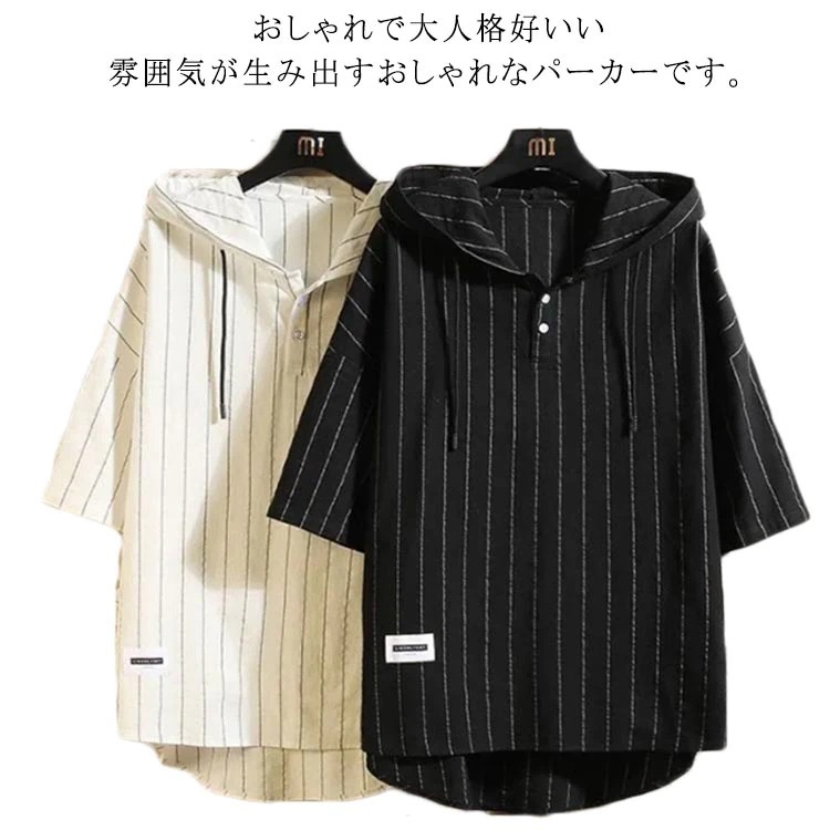 パーカー メンズ 半袖 夏服 tシャツ 大きいサイズ フード付き ストライプ プルオーバーパーカー 無地 トップス カジュアル 黒 白 大きいサイズ 薄手 送料無料