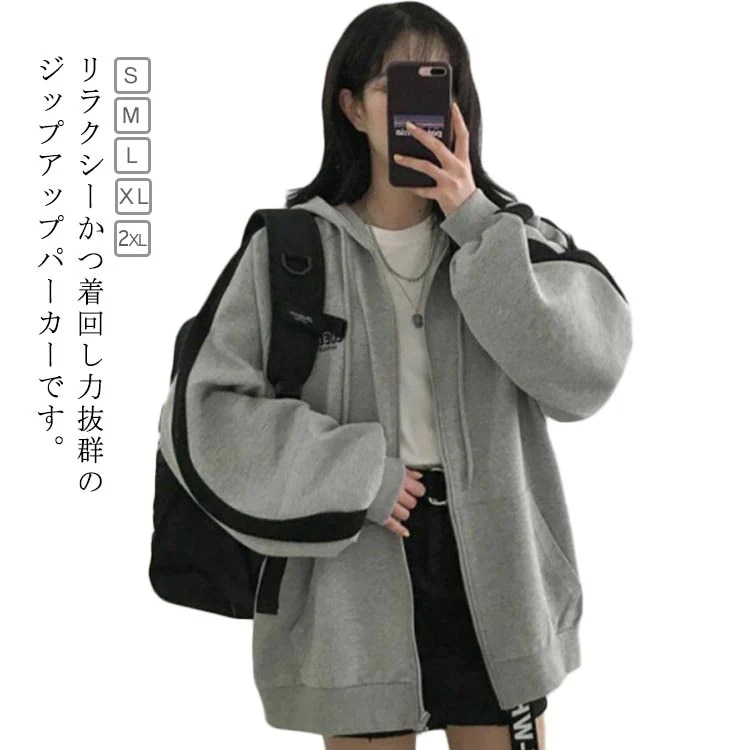 パーカー 体型カバー アウター レディース ライトアウター トップス パーカー フーディー ゆったり 羽織り 大きいサイズ グレー 秋冬 春 スウェット ジップパーカー 秋服 フード付き シンプル 送