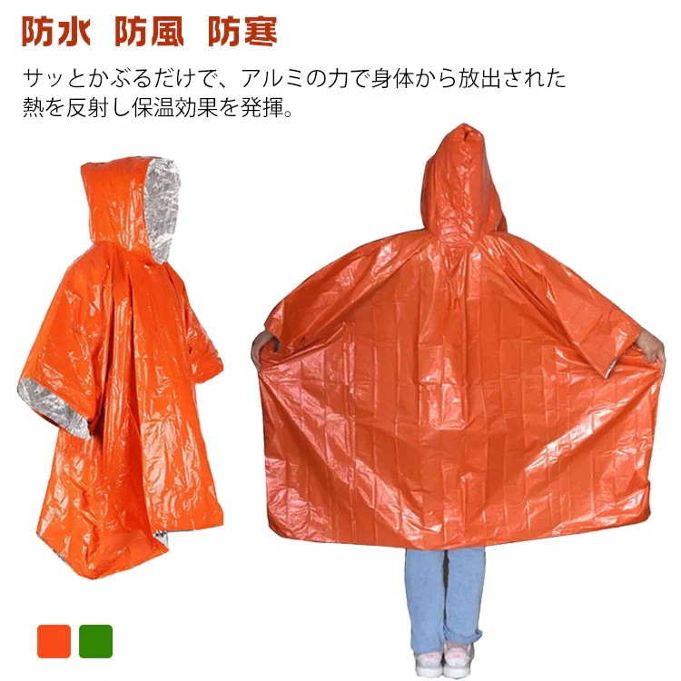 アルミポンチョ レインコート レインポンチョ アルミ アルミシート サバイバルシート 巾着袋なし フード付き シート ブランケット 緊急 非常用 遮熱シート 防水 防風 防寒 保温 防災 収納ポーチ付