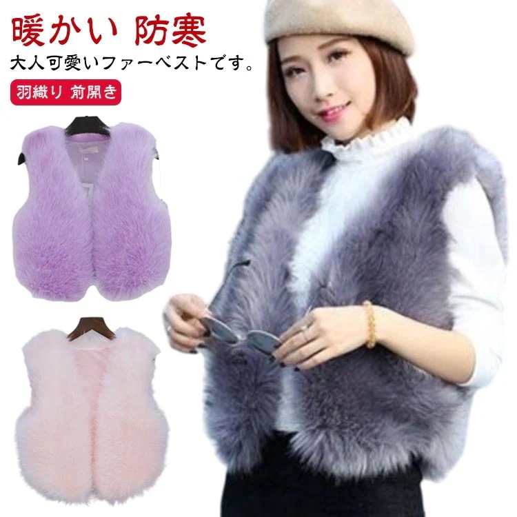 ファーベスト レディース ベスト ショート フェイク ファー 羽織り ノースリーブ ジレ 前開き ボア ボアベスト コート ノーカラー 秋冬 ジャケット アウター Vネック 上着 袖なし ふわふわ モ