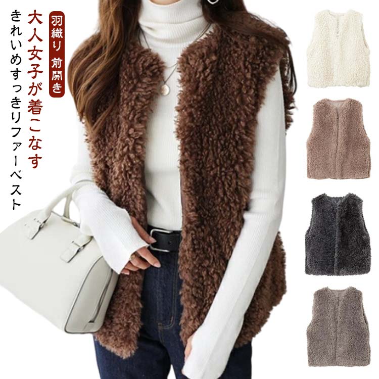 ファーベスト レディース ベスト ショート フェイク ファー 羽織り ノースリーブ ジレ 前開き ボア ボアベスト ボアジレ コート ノーカラー 秋冬 ジャケット アウター Vネック 上着 袖なし ふ