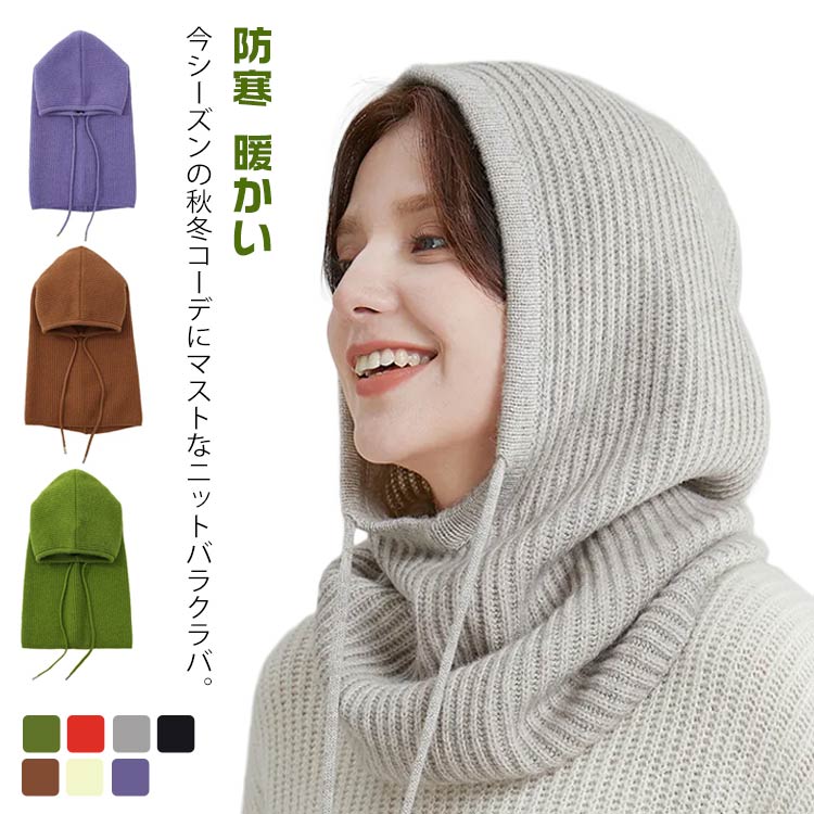 バラクラバ ニット フード付きネックウォーマー レディース バラクラバ フーディー マフラー 帽子 ぼうし フード フードウォーマー フェイスガード スヌード ニットフード 付けフード 個性的 おしゃ