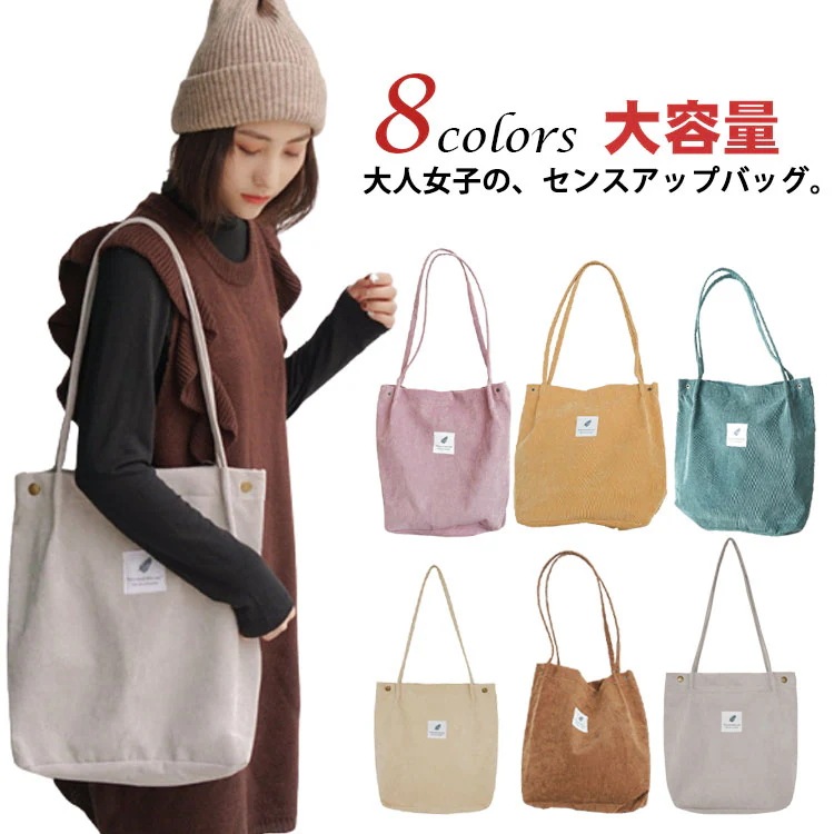トートバッグ レディース a4 縦型 軽量 通勤 通学 大学生 大容量 かわいい おしゃれ コーデュロイ マチ広 軽量 マザーズバッグ シンプル 無地 おしゃれ かわいい 収納 軽い ポケット 頑丈